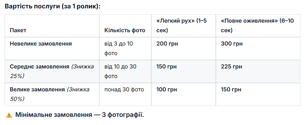 ✔️ Ціна вказана за 1 ролик, створений з одного вашого фото.