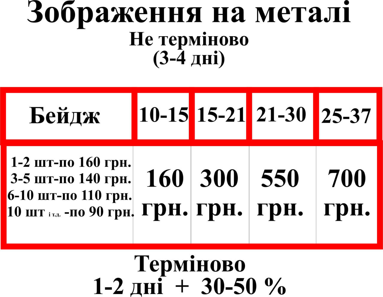 Ультрафіолетовий друк на металі — це сучасна технологія, яка дозволяє наносити зображення, логотипи, написи та будь-які графічні елементи на металеві поверхні з ідеальною передачею кольору та високою деталізацією. Такий друк забезпечує довговічність зображення: воно не вигоряє на сонці, не боїться вологи, перепадів температур і механічних впливів. Ваші вироби залишатимуться яскравими та привабливими протягом багатьох років.