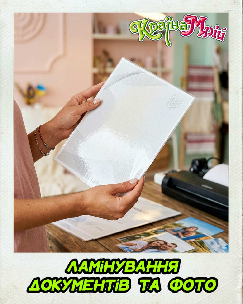 Ламінування здійснюється у вашій присутності, так що вам не доведеться залишати цінні документи, призначені для ламінування, без нагляду.